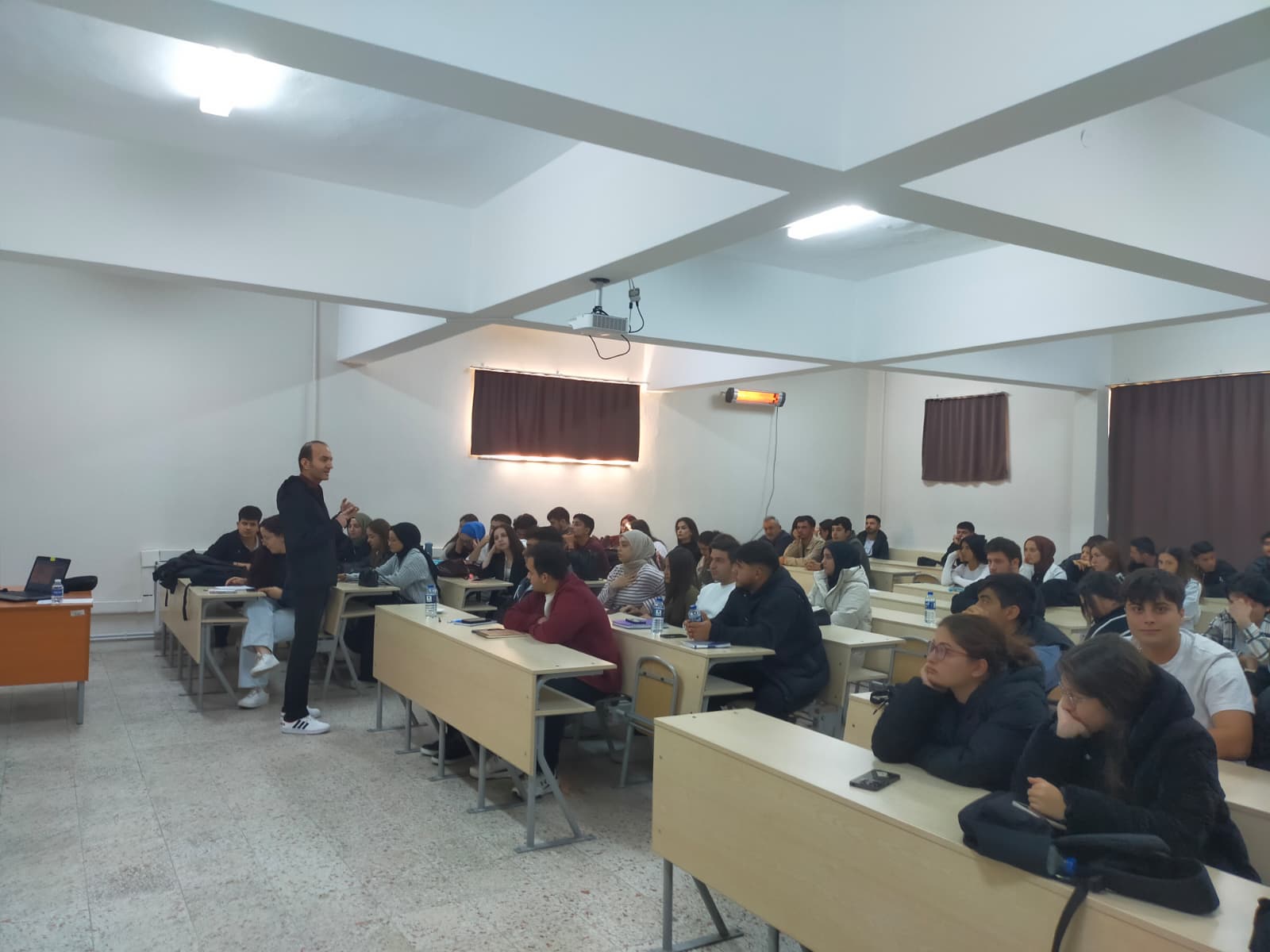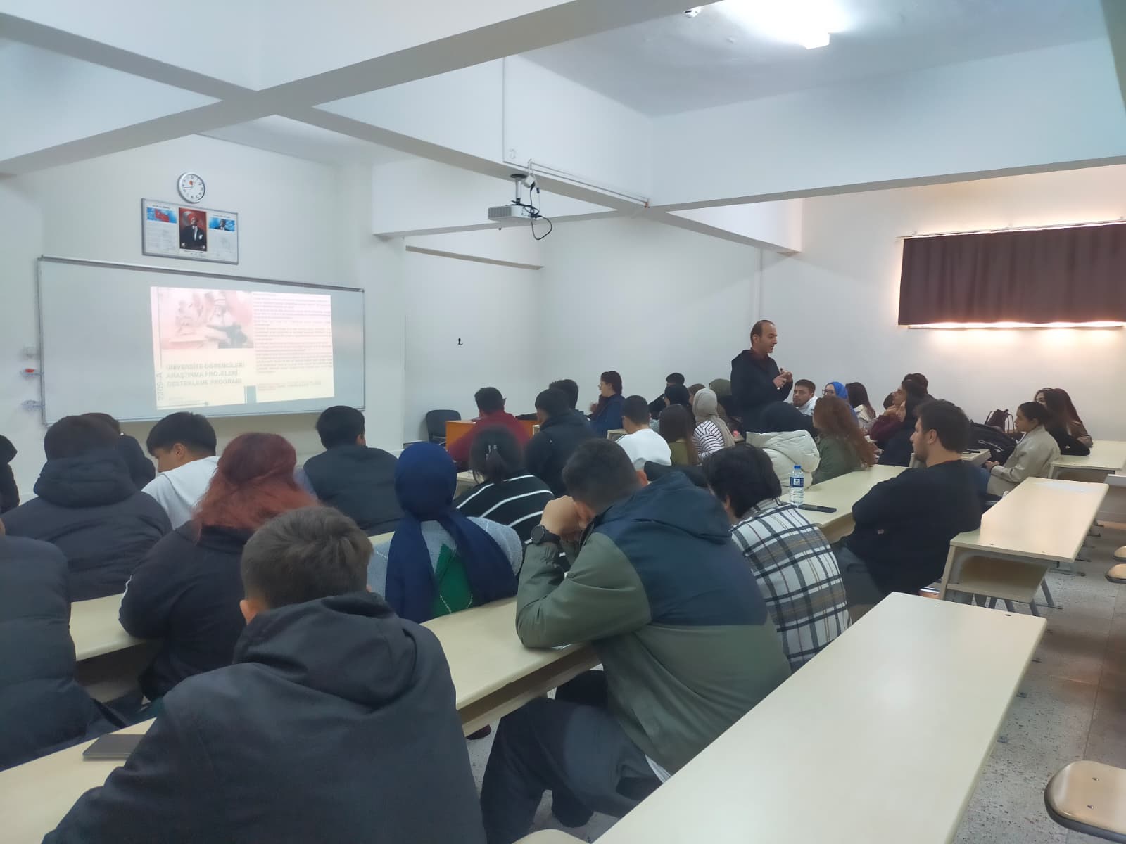 Meslek Yüksekokulumuzda 27.10.2025 Pazartesi günü Müdür Yardımcısı Öğr. Gör. Cengiz ÇETİN, öğrencilerle buluşma toplantısı düzenledi.Toplantıda öğrencilere 2209-A Üniversite Öğrencileri Araştırma Projeleri Destekleme Programı, 4001 Ulusal ve Uluslararası Yarışma/Etkinlik Katılım Desteği ve Rektörlük İletişim Merkezi (RİMER) hakkında bilgilendirme yapıldı.