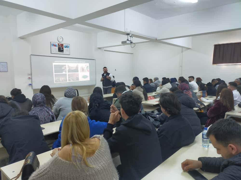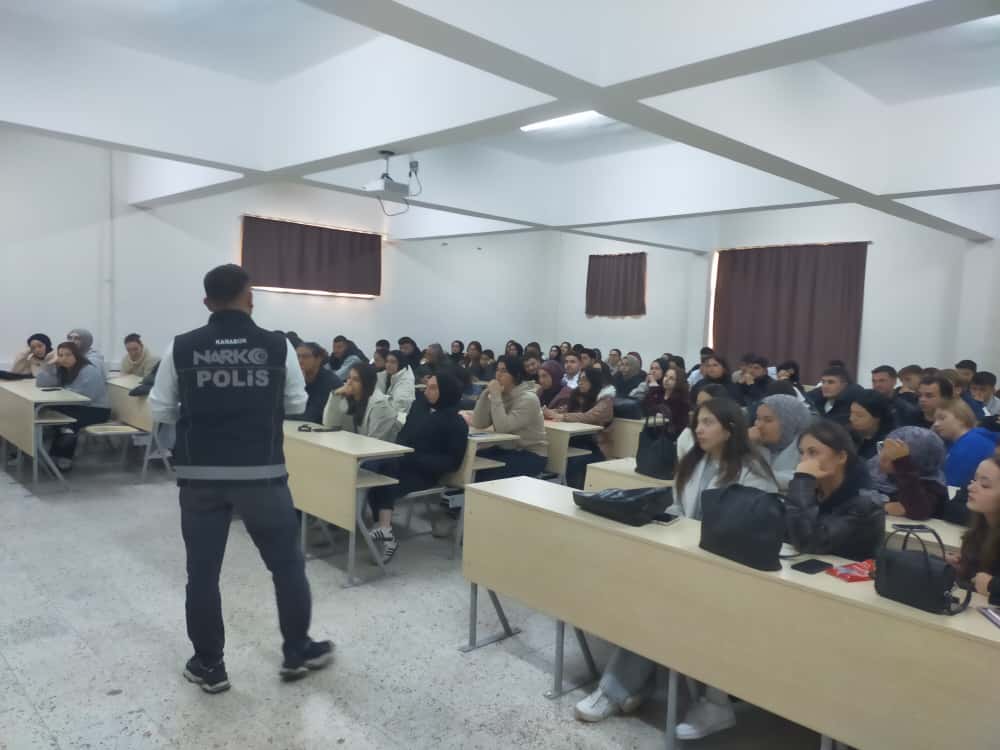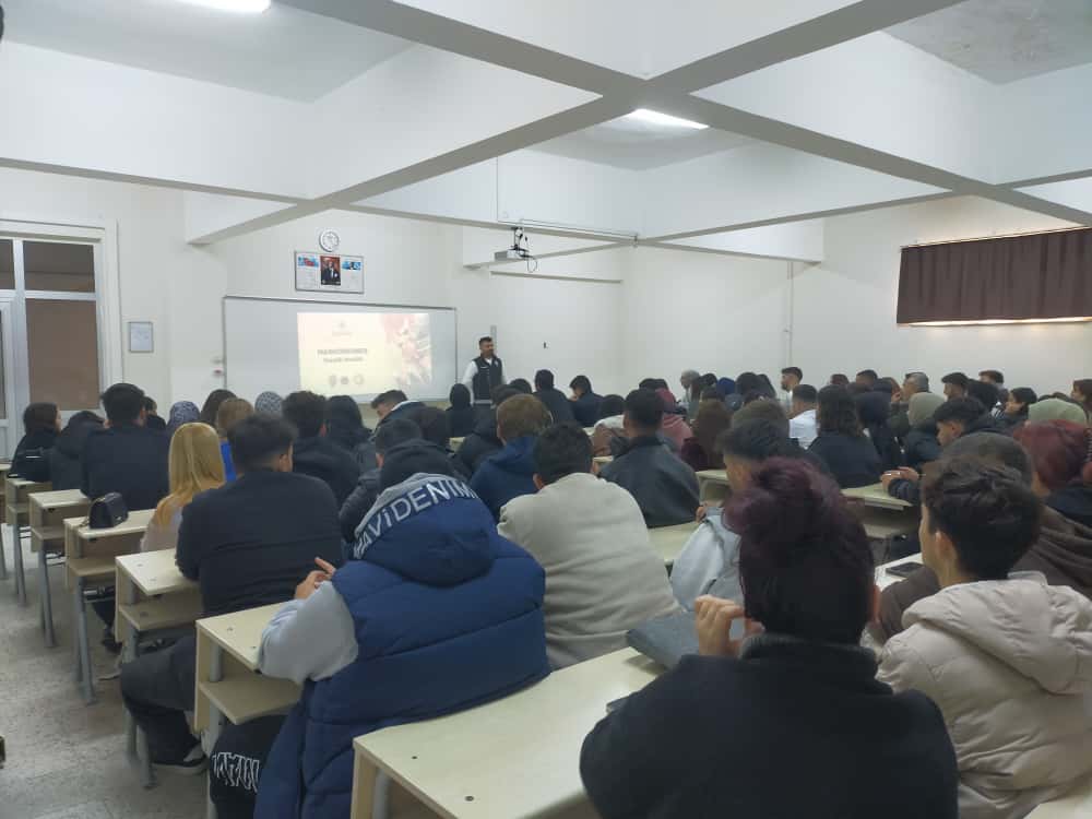 Meslek Yüksekokulumuzda, 19 Kasım 2025 Çarşamba günü öğrencilerimize uyuşturucu madde bağımlılığının tehlikelerini ve korunma yolları karşı bilinçlendirmek amacıyla “Narkogençlik Eğitimi” düzenlendi. Öğrencilere bağımlılığın psikolojik ve sosyal nedenleri, maddelerin yol açtığı fiziksel, hukuki ve sosyal sonuçlar detaylıca anlatıldı.